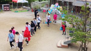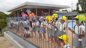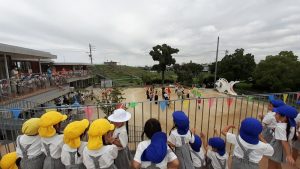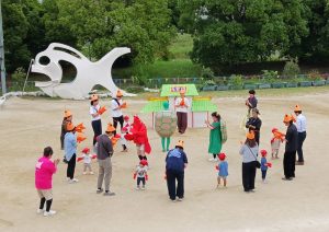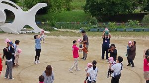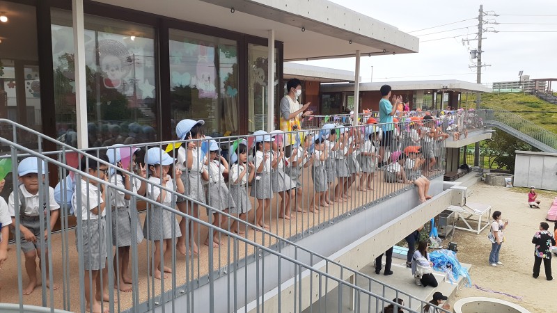 年長組さんが演奏する ♪ミッキーマウスマーチにあわせて