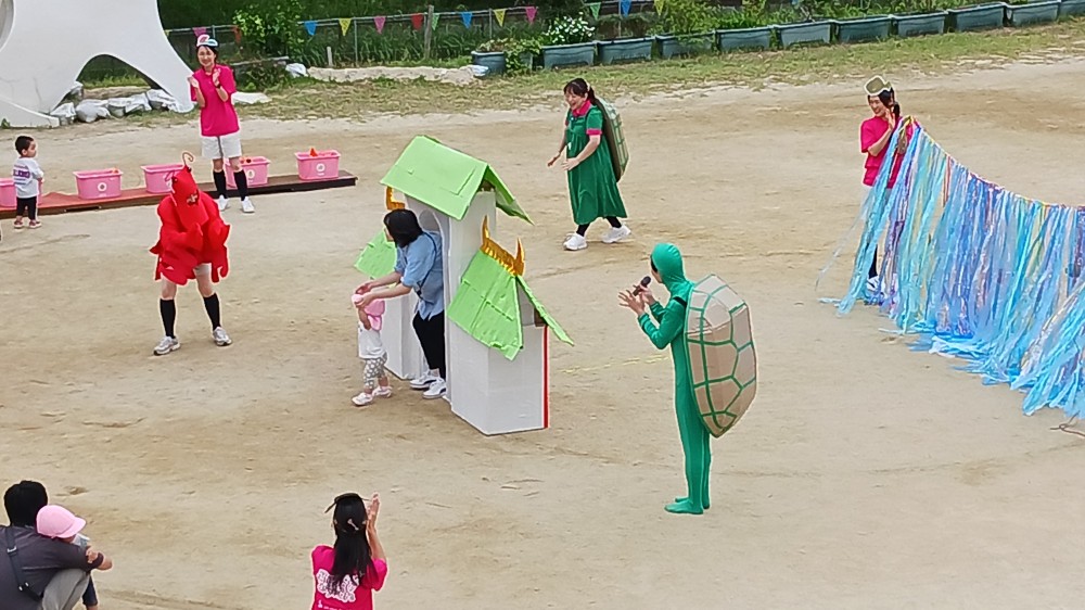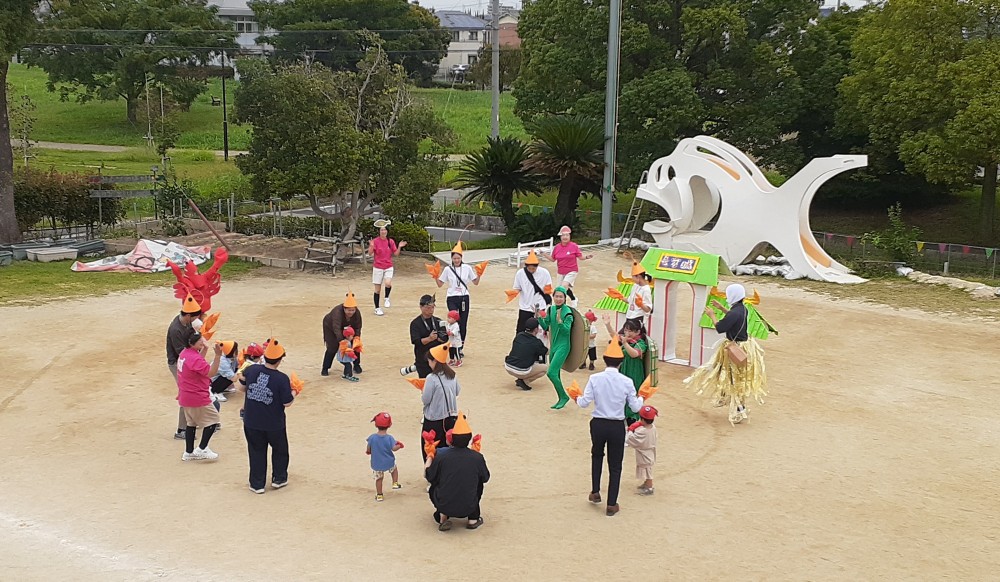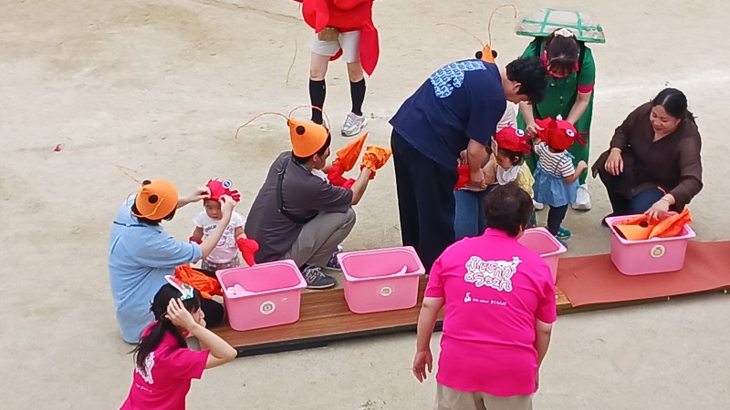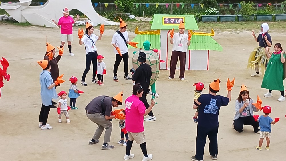 さあ みなさん! エビさんや カニさんに 変身して みんなで 踊りましょう!