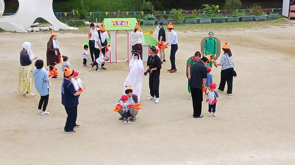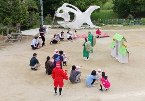 さあ みんなで 玉手箱を 開けましょう~あらあら?モクモク… モクモク…けむりが…