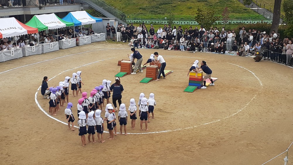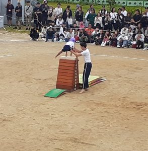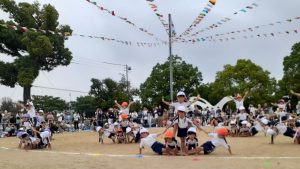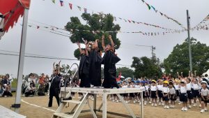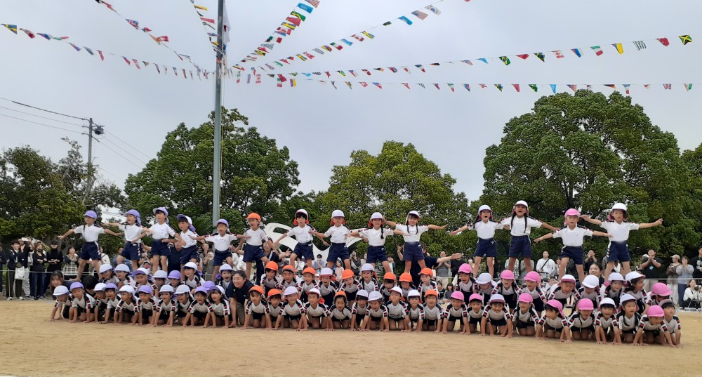 みんなの力がひとつになって 見事に全員ピラミッドが できあがりました!