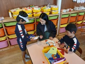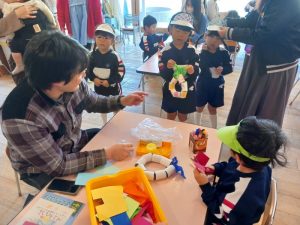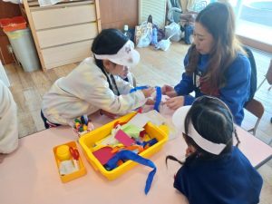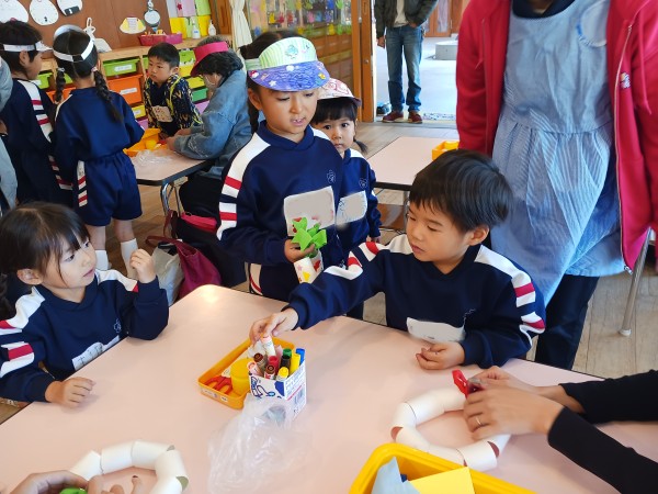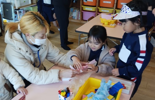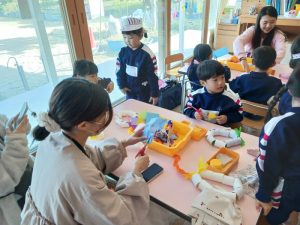 行事 作品展『KidZania in Fujibunka くどりんず』 2025年11月21日 く…クリスマスに ど…ドアに飾る り…リース です! いらっしゃいませ~! 材料をどうぞ トイレットペーパーの芯でクリスマスリースを作ります ショップの店員さんが作り方の説明をします 店員さんが作り方をアドバイスします かわいいクリスマスリースができました🎄 前の記事を見る< 一覧に戻る >次の記事を見る 〈 前の記事を見る 一覧に戻る次の記事を見る 〉