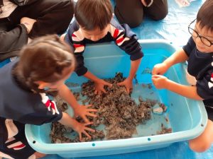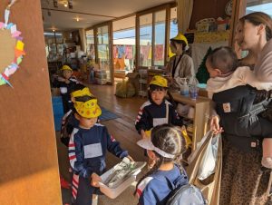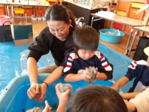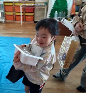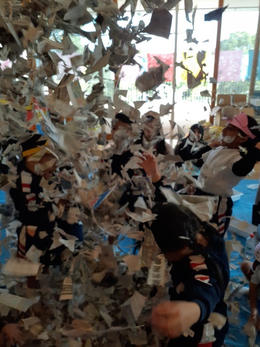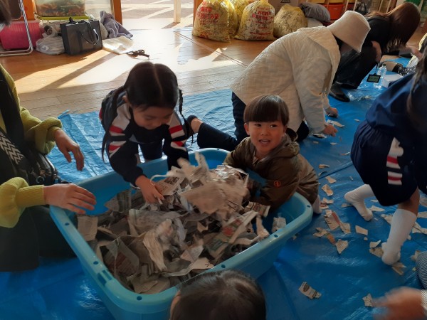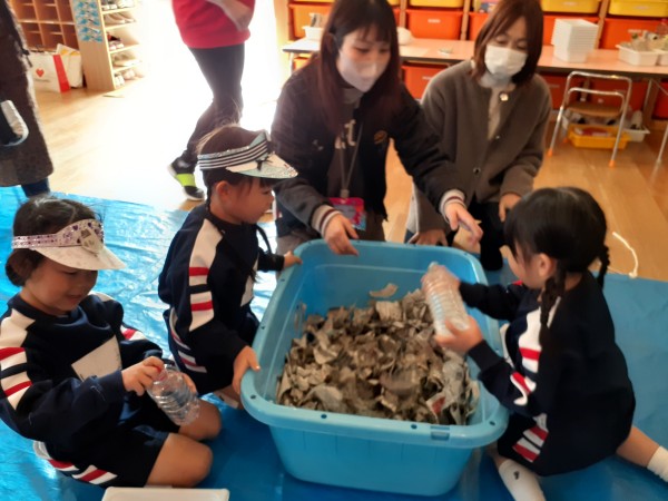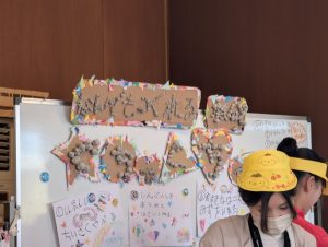 行事 作品展『kidZania in Fujibunka なんでもつくれるねんど ぐちゃぐちゃ』2025年11月21日 いらっしゃいませ~ 材料をどうぞ 店員さんが説明します 新聞紙をビリビリ破いて それ~! 集めて 集めて 水を入れます ぐちゃぐちゃ~ おだんごができた! 前の記事を見る< 一覧に戻る >次の記事を見る 〈 前の記事を見る 一覧に戻る次の記事を見る 〉