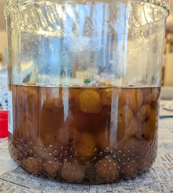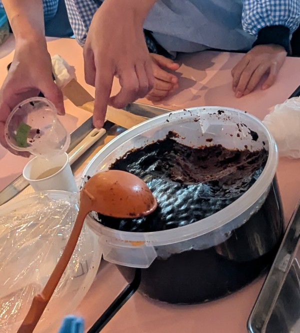 作った時は、大豆色(白っぽくて黄色ぽい色)だったのに、茶色の味噌の色になった!