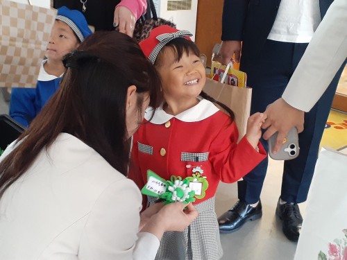 行事 第57回入園式2026年4月8日 \(^o^)/ ♪ ちゅーりっぷ \(^o^)/ 園長あいさつ \(^o^)/ 担任紹介 みんなの先生はだぁれかな? \(^o^)/ おはながわらった \(^o^)/ 課外教室紹介 ・造形 ・日本舞踊 ・英語であそぼう ・体操 \(^o^)/ 名誉園長あいさつ \(^o^)/ 新入年中組さん 🌷チューリップ組 つくし組 きく組 ☺️職員一同 前の記事を見る< 一覧に戻る 〈 前の記事を見る 一覧に戻る